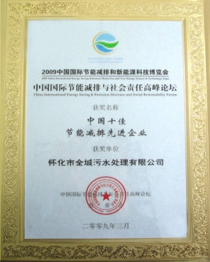 • 2009年3月在胡錦濤、溫家寶等中央領(lǐng)導出席的中國國際節(jié)能減排與新能源科技博覽會和高峰論壇上評為“中國十佳節(jié)能減排先進企業(yè)”。